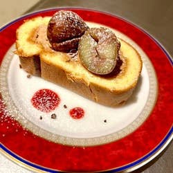 店内でじっくり仕込んだ 栗の渋皮煮 をロールケーキに添えて、コースの最後にご提供。